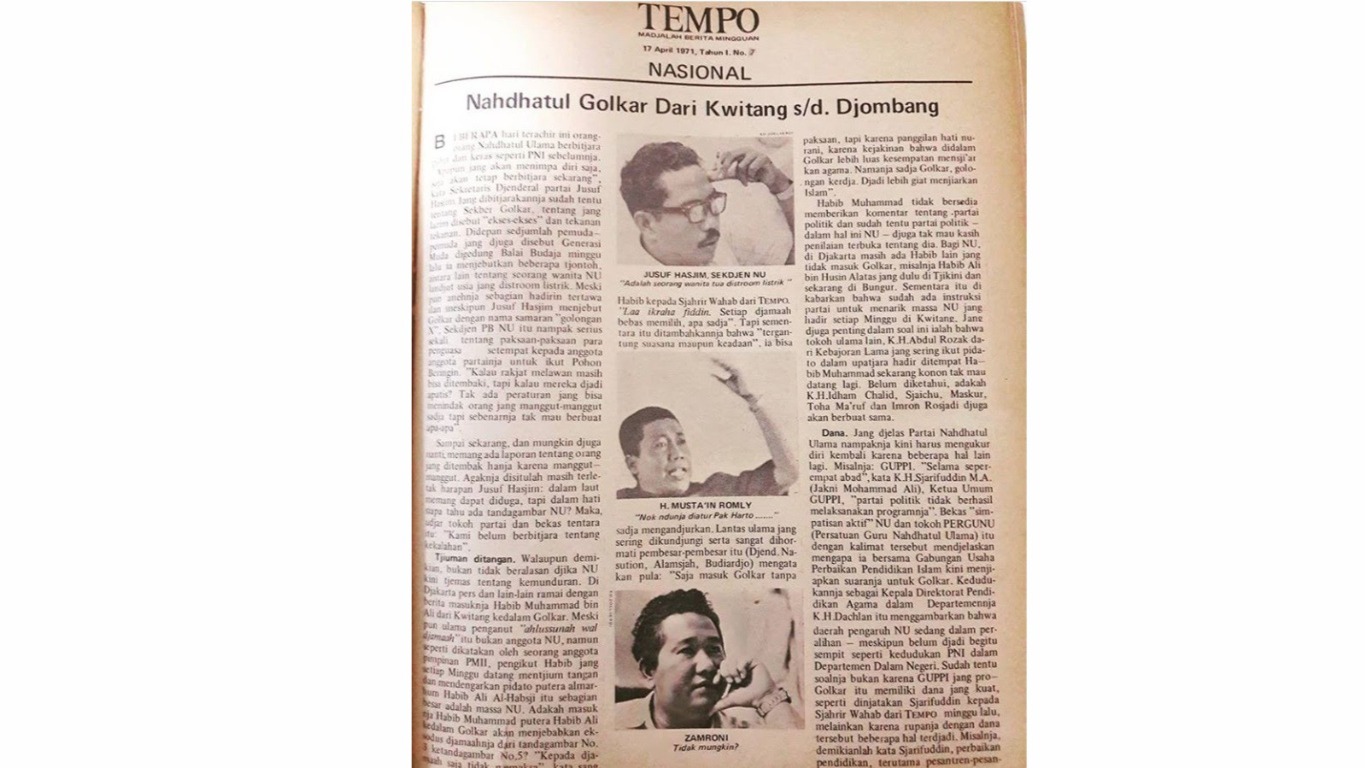 Majalah Tempo saat memuat masuknya Kiai Tain ke Golkar.